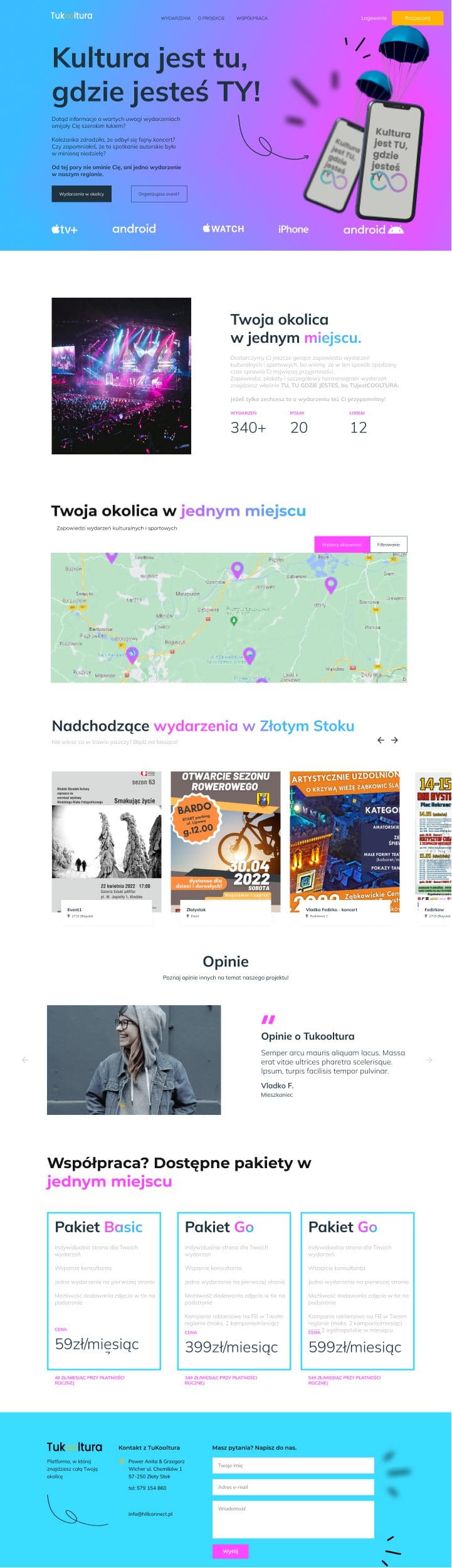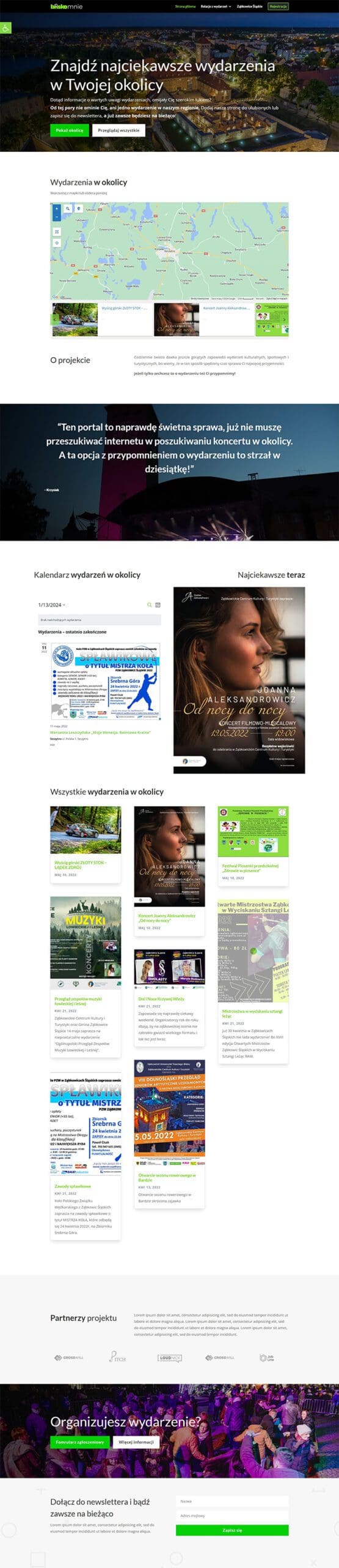 projekt strony internetowej/aplikacji przeznaczonej do wyszukiwania eventów w okolicy oparty o CMS WordPress i automatyczne wskazywanie lokalizacji użytkownika
