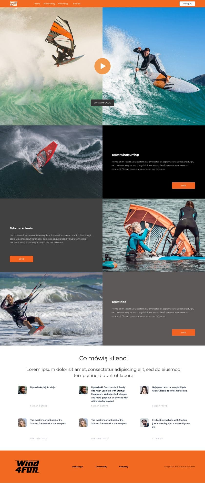 projekt strony internetowej przygotowany dla szkoły windsurfingu oraz kite na Prasonisi