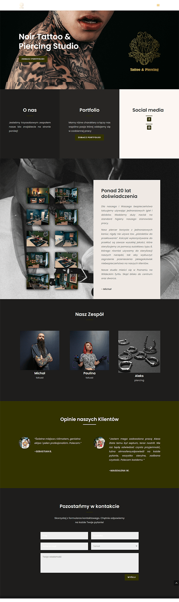 projekt strony internetowej poznańskiego studia tatuażu i piercingu